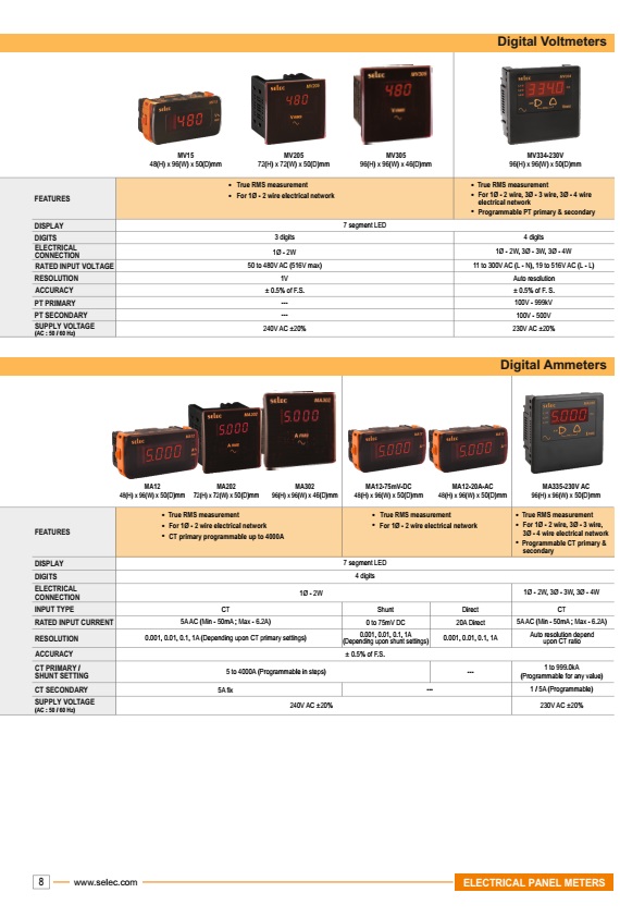 Đồng Hồ Đo Điện Áp AC SELEC MV305(96×96) dùng để lắp đặt trên cánh cửa tủ điện với đồng hồ hiển thị 3 số to rõ ràng với LED 7 đoạn.