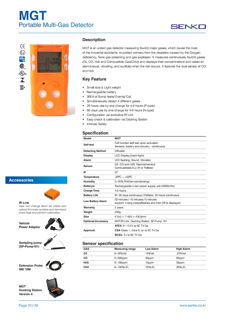 THÔNG SỐ KỸ Máy Đo Đa Khí SENKO MGT-P (O2-CO-H2S-Khí dễ cháy)
