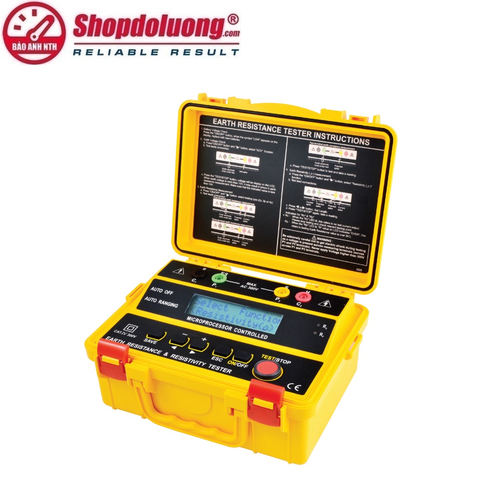 Hệ thống đo: Điện trở đất bằng dòng không đổi Inverter 820Hz approx. 2mA