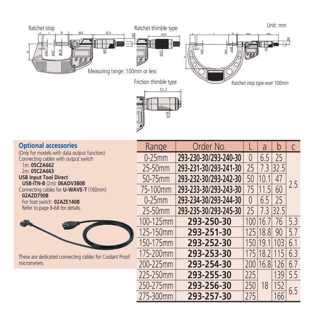 THÔNG SỐ KỸ THUẬT Panme Đo Ngoài Điện Tử MITUTOYO 293-253-30 (175-200mm/0.001mm)